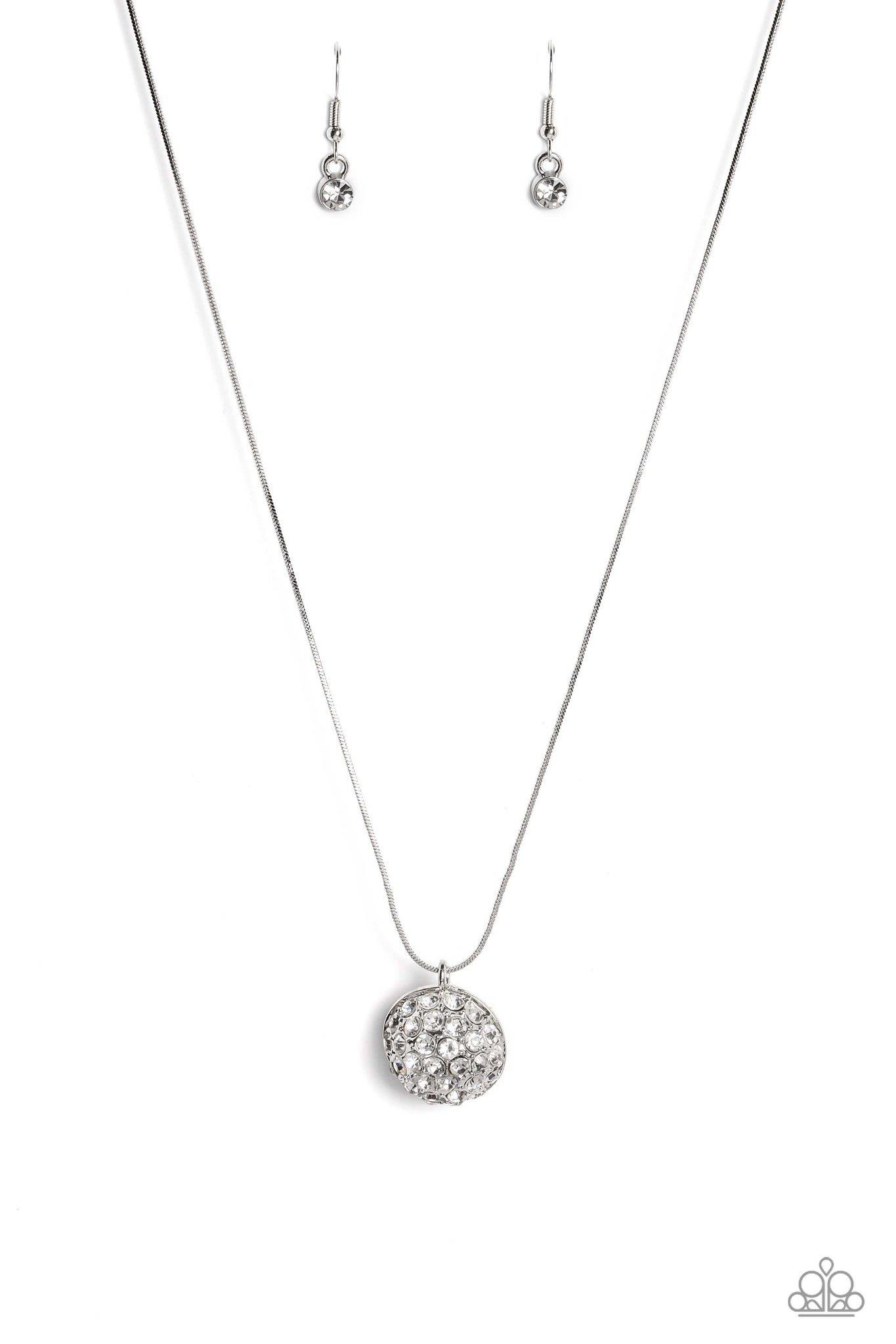 Cascading from a shiny silver snake chain, a sparkly white rhinestone-encrusted ornament and a classic white pearl meet to create a half-and-half refined pendant. Features an adjustable clasp closure.